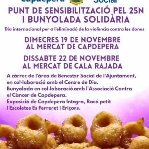 El 25 de novembre es commemora el Dia Internacional per a l’Eliminació de la Violència contra les Dones i a Capdepera s’ha programat tot un seguit d’activitats i accions reivindicatives,
