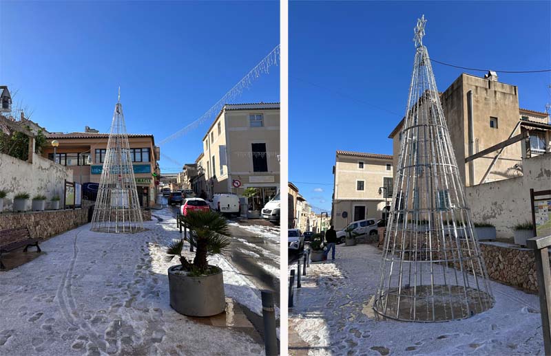 Avui, després d’una calabruixada el vespre, entre les 9 i les 10,30h ha fet una forta calabruixada entre Capdepera i Artà que tothom ha volgut retratar. Amb gruixos de més de 10 cm. ha quallat i ha fet malbé alguns tendals com el de Can Patilla. També hem de lamentar un accident de cotxe.
