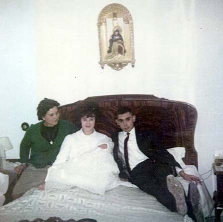 En el centre de la fotografia, treta en l’intimitat de la família, hi ha la mare d’Agustí, n´Antònia Sureda ”Vergera” i acompanyada dels seus padrins de bateig que són na “Catoia” i en “Caracu”.