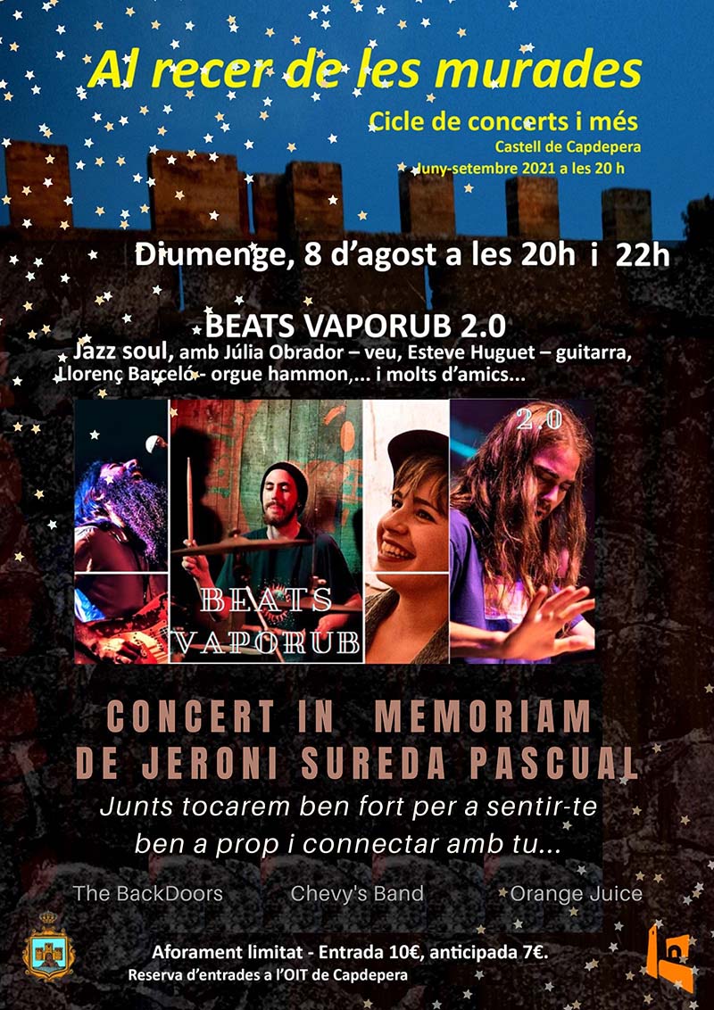 El concert de dia 8 havia de ser un concert de jazz-soul. Centrat bàsicament en la improvisació. Ho havia preparat minuciosament. Li feia molta il·lusió. Ho havia gestionat tot ell. Aquesta versió 2.0 de BeatsVapoRub volia ser un bàlsam que servis pels qui encara creuen que la música és una medicina, un mitjà de catarsi, diversió i expressió. Creia, com els seus companys, en el contacte directe, en fer una música molt viva, fresca, tant ballable com escoltable i que afecta directament tant al cervell i com a l’entranya. Interacció i imaginació. Aquí versava la màgia.