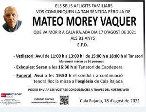 Defuncions / Jeroni Sureda Pascual Cap Vermell 22 de juliol de 2021 https://www.grupmuntaner.com/es/esqueles-digitals