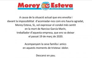 Narciso García Marín va ser treballador i company de l’empresa Morey/Esteva durant molts d’anys i, degut a la situacio que esteim vosquent, no se van
