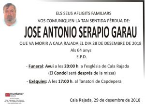 Mor Feliciano Casas Cap Vermell 2 d'abril de 2018 Era el cap de Protecció civil de Capdepera i va ser regidor del PP