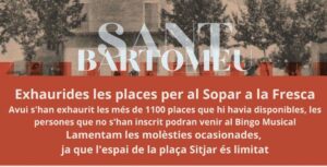 L’Ajuntament va haver d’aturar les inscripcions una setmana abans del Sopar a la Fresca 2025