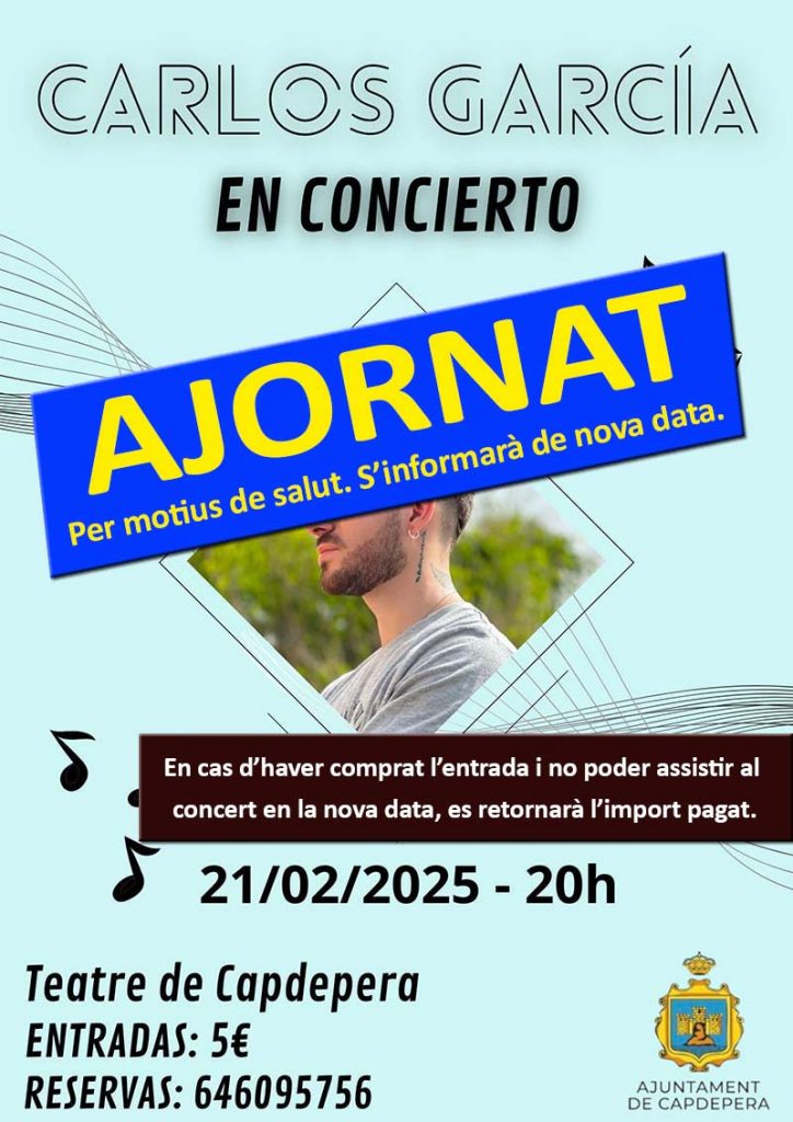 Ajornat 3l concert CARLOS GARCIA per motius de salut de l’artista. Clica per ampliar la imatge