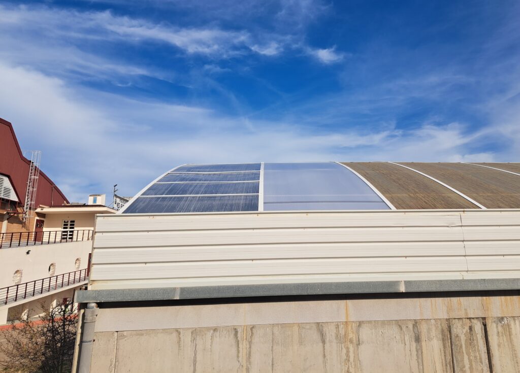 La coberta de la piscina ja està arreglada. La gespa del camp de fubtol probablement la setmana que ve