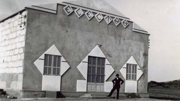 A la primera foto don Joan Villiger davant una original façana de la nova central elèctrica al carrer del Far, avui carrer Elionor Servera.