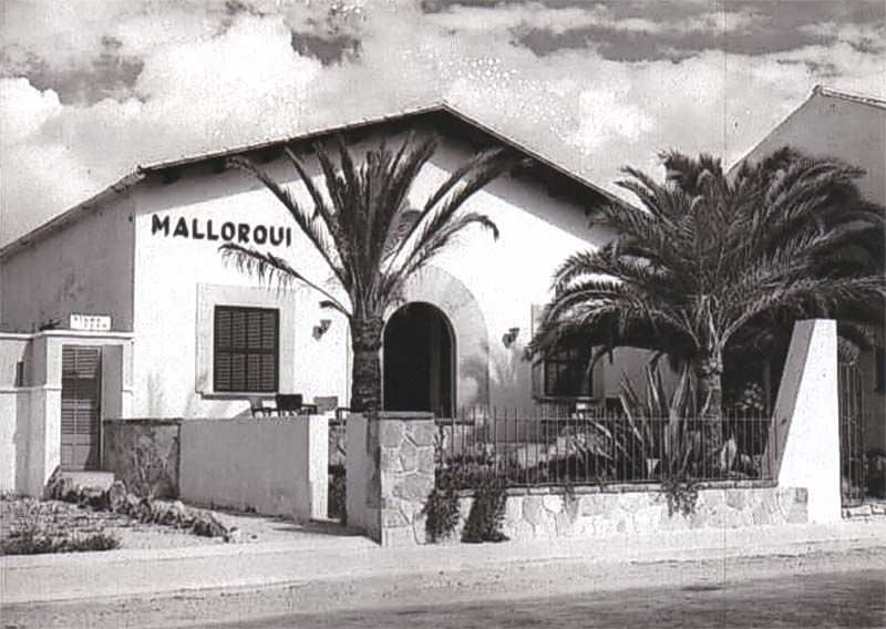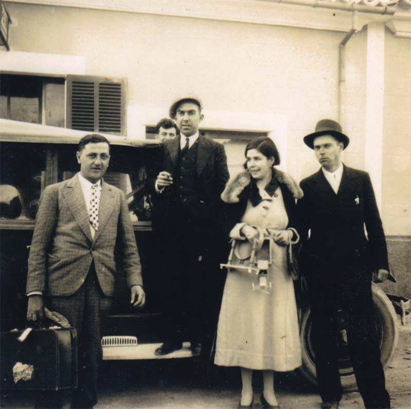 La primera foto és l’arribada de don Joan Villiger i la seva esposa Theresa Widmar, nuvis l’any 1933, a Cala Rajada amb Jeroni Alzina «Jeroniet» amb el seu taxi i en Manuel Fernàndez «Coquer», amic de don Joan.