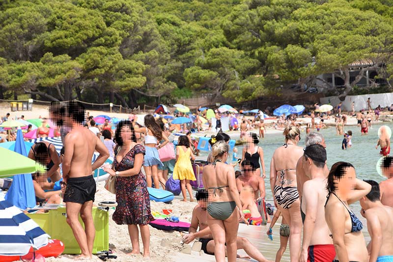 L’arena crema. Les platges estibades. Cues de 12 minuts els dies feiners per entrar a l’aparcament de Cala Agulla a les 10,30 h. A les 13 h, poden arribar als 20 minuts. Sempre parl dels dies feiners. El «potencia-vitamina» continua ben igual, tot i que li costa més passar pel mig de les tovalloles perquè cada vegada hi ha menys espai. Si vols sombrilles o para-sols, just a l’entrada te n’ofereixen de tota casta. Hi ha policia de platja?