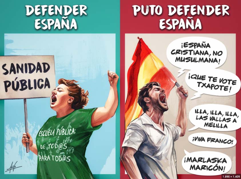 “Els que “putodefensenEspaña” uns dies van amb nines inflables i d’altres passen el rosari i sempre alcen el braç per demanar taxis”.