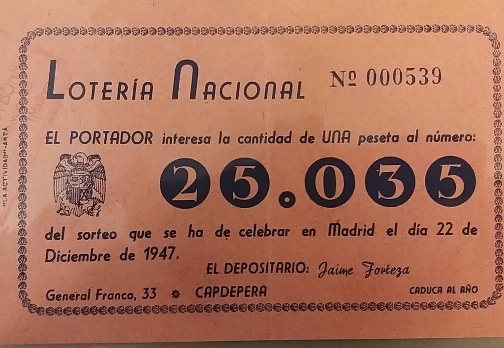 Bitllets de loteria de Nadal de 1947 de Capdepera i Cala Rajada: eren anys de fam