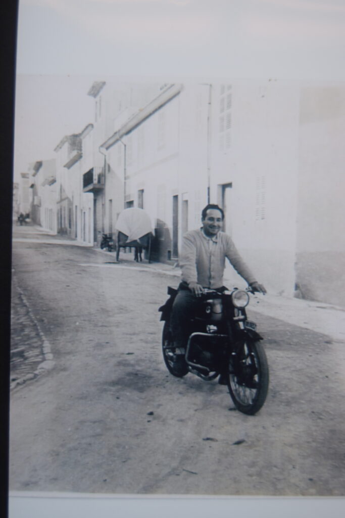 A la fotografia en Manolo Llevates amb una moto OSSA al carrer del Port, a Capdepera.