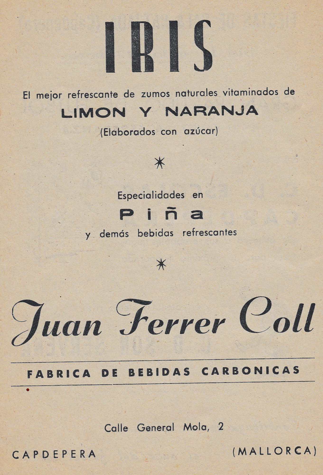 En Joan Ferrer i en Sebastià Nebot fabricaren les begudes Iris de taronja i llimona, unes de les begudes amb mes prestigi de Mallorca.