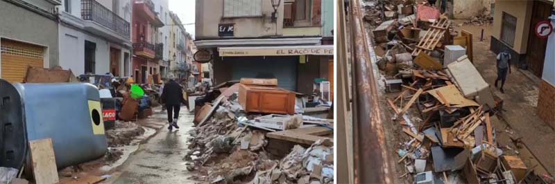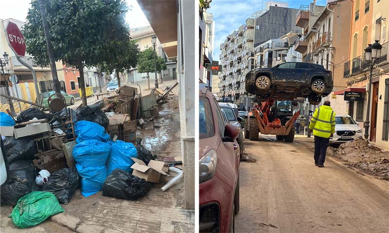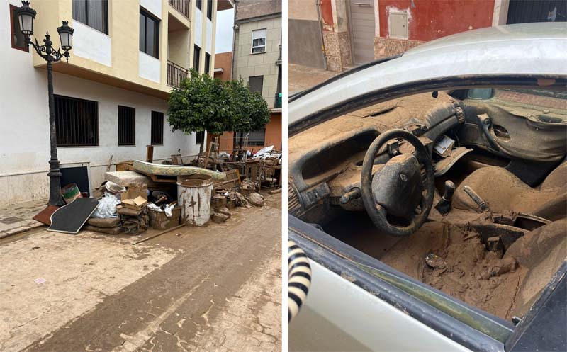 “La casa feia feredat, tot el que havia en la planta baixa estava per tirar, tot. I imagino que a totes les altres cases la situació era la mateixa. Poques coses van poder salvar, així que van triar el que havien de tirar mobles i trastos inservibles”. Havia un greu problema de mobilitat la gent no podia anar a la feina (molts fan feina altres pobles o polígons industrials), ni a escola… i la meva família tampoc. “Els pocs cotxes que funcionaven , curiosament, eren els antics. I me sorprengué que alguns tenien les finestres abaixades i tot el cotxe ple de fang, sembla els cotxes moderns tenen un sensor que automàticament baixa els vidres quan l’aigua arriba a un nivell”.