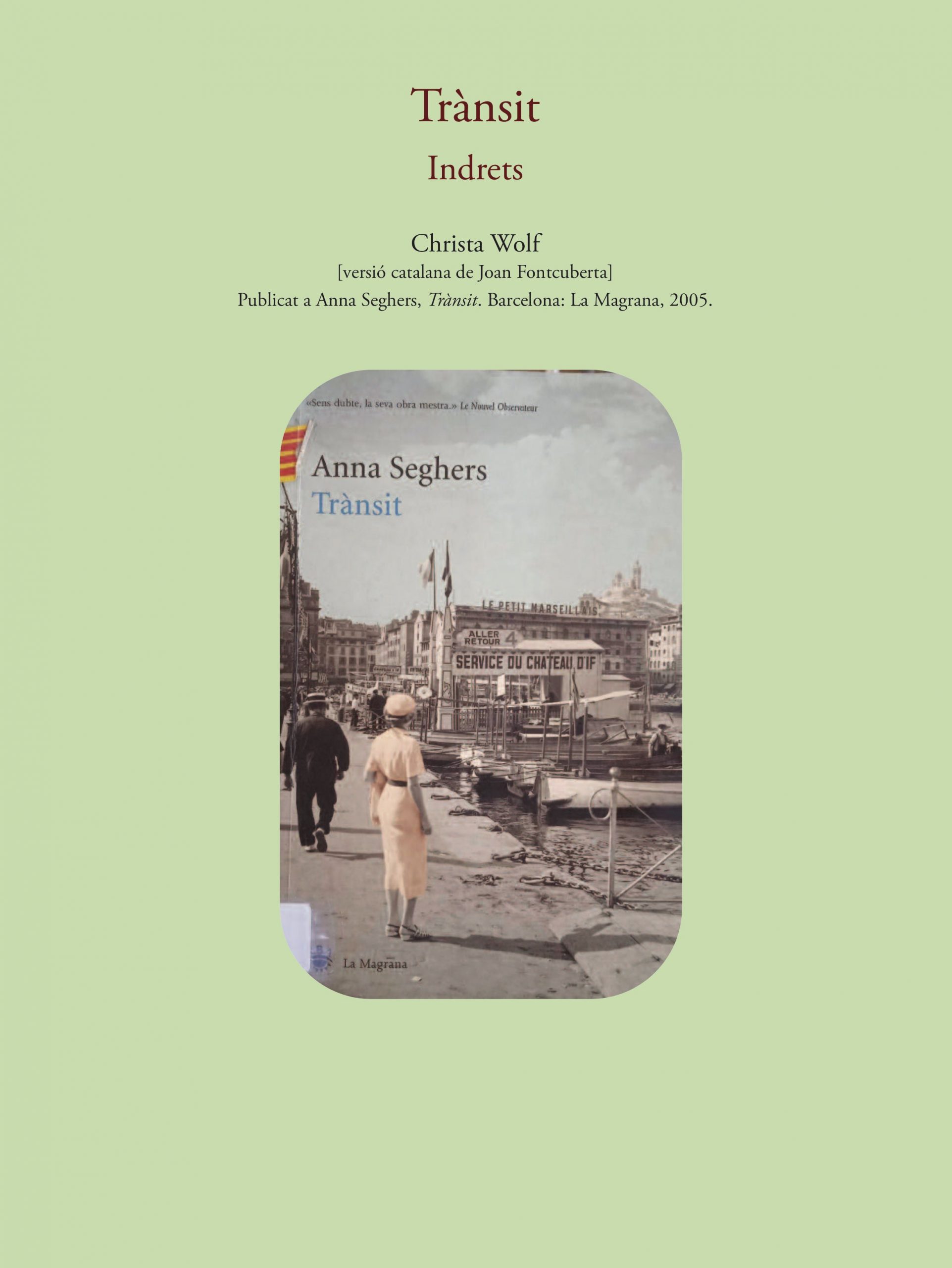 Malgrat tot, la primera edició de Transit no fou en alemany, sinó en anglès i mexicà el 1944 i, després finalment, en alemany el 1947. Però, sens dubte, la versió catalana és molt important per noltrus, per dos motius: perquè és la nostra sagrada llengu i perquè té un epíleg de Christa Wolf, la gran escriptora DDR que ens acosta a l’univers de la novel·la d’una manera magistral.