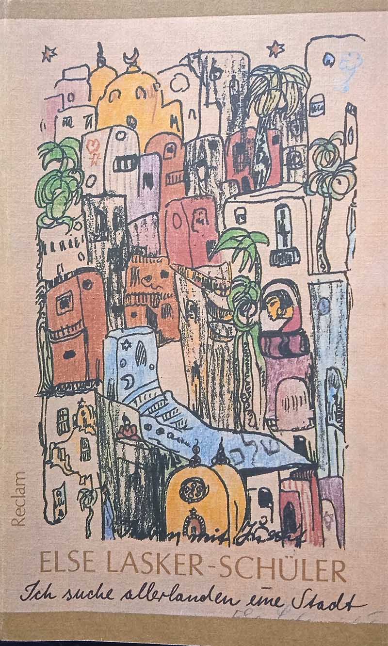 I de sobte a la llibreria Antiquariat m’arriba aquest llibre de Lasker-Schüler: Ich suche allerlanden eine Stadt (Gedichte, Prosa, Briefe). Leipzig: Verlag Philipp Reclam, 1988.