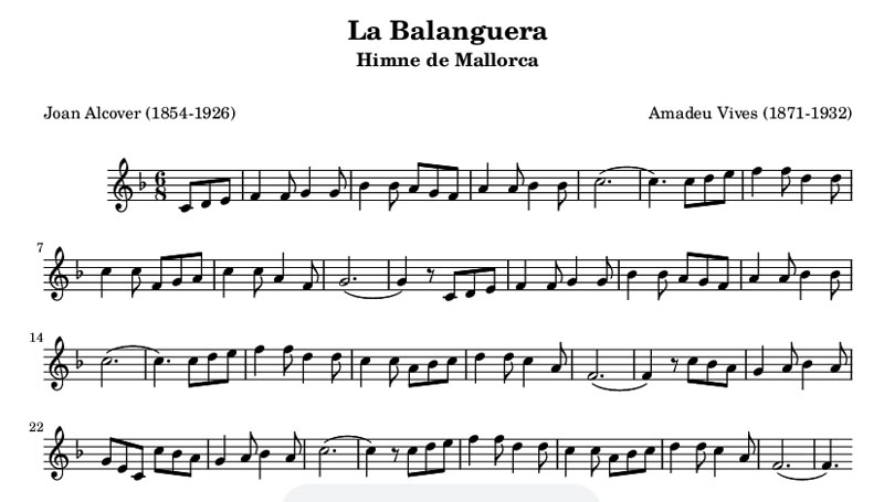 La resta és coneguda: dia 29 de maig de 1926 tengué lloc l’estrena de la composició de Vives a Barcelona, al Palau de la Música, per part de l’Orfeó Català, i el 28 de juny a Palma, al Teatre Líric, de la mà de l’Orfeó de Sabadell, ‘que fue escuchada por el auditorio en pie, sonando una estruendosa ovación hasta que fue bisada, repitiéndose los aplausos‘ (La Almudaina de dia 29). El dia abans ja n’havien interpretat ‘algunas estrofas’ al Círculo Mallorquín. La recepció va ser extraordinària i des del primer moment —reunia tots els ingredients perquè així fos– va assolir la condició d’himne oficiós de Mallorca. El Consell va declarar La Balanguera com a himne oficial de l’illa el 4 de novembre de 1996.
