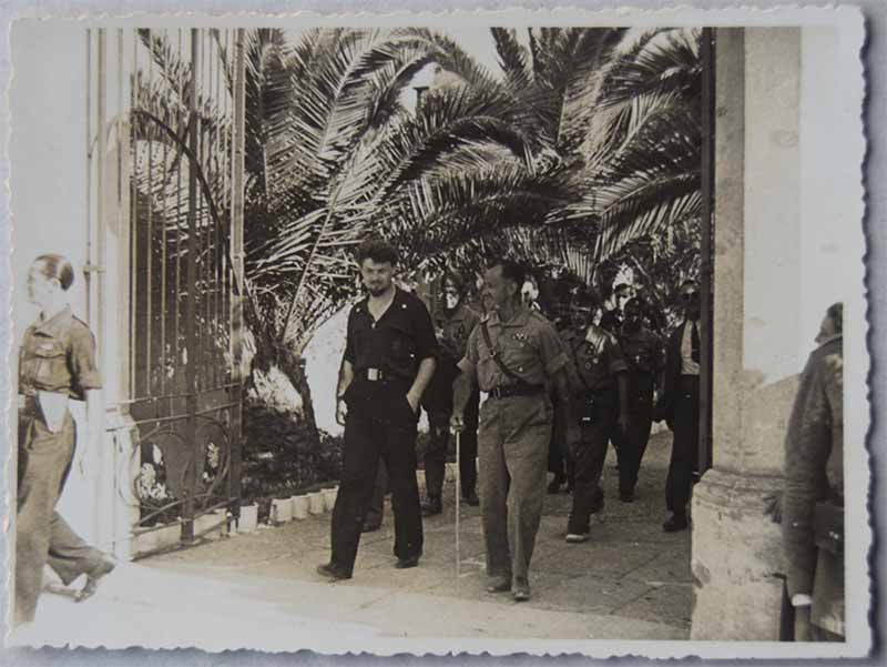 El comte Rossi sortint de l’hotel Castellet acompanyat de dirigents de la Falange.