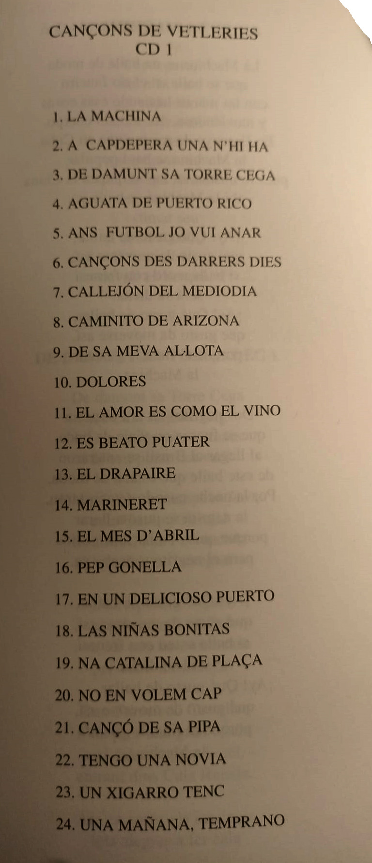 Aquesta setmana: “Vetleries, vivències i cançons d’un poble: Capdepera” disc de compacte publicat l’any 2007 per l’Ajuntament de Capdepera que fa una compilació musical de serenates i vetleries.