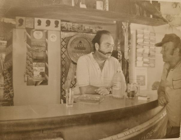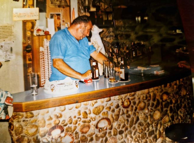 El local, petit i fosc, era presidit per la mandíbula d’un tauró. A l’època que els Bloch varen arribar a Cala Rajada, encara se pescaven diversos tipus de taurons, no tan sols mussola. Tintoreres, taurons martell o llunades -també coneguts com a guàrdia civils per la forma de tricorni del cap o la seva mala bava, qui sap- i taurons blancs (salroigs), eren habituals a la costa de Llevant. La base de la barra estava folrada de bales i petxines de pelegrí (en castellà, vieires). Plena d’estrelles de mar i tota casta d’animals marins, era com la cantina que hagués muntat el vell Ahab després de perseguir a Moby Dick per tots els mars del món. I en ell mateix, amb el seu bigot empeltat amb les patilles, acabava de completar el quadre. Era el mariner endurit per la salabror i les tempestes, que finalment s’havia refugiat rere una barra. L’únic animal viu present era un pastor alemany, ajagut en terra de manera sempiterna. Pentura som de nas un poc sensible, però diria que a aquell ca, l’aigua només la coneixia de beure-la.