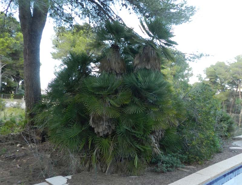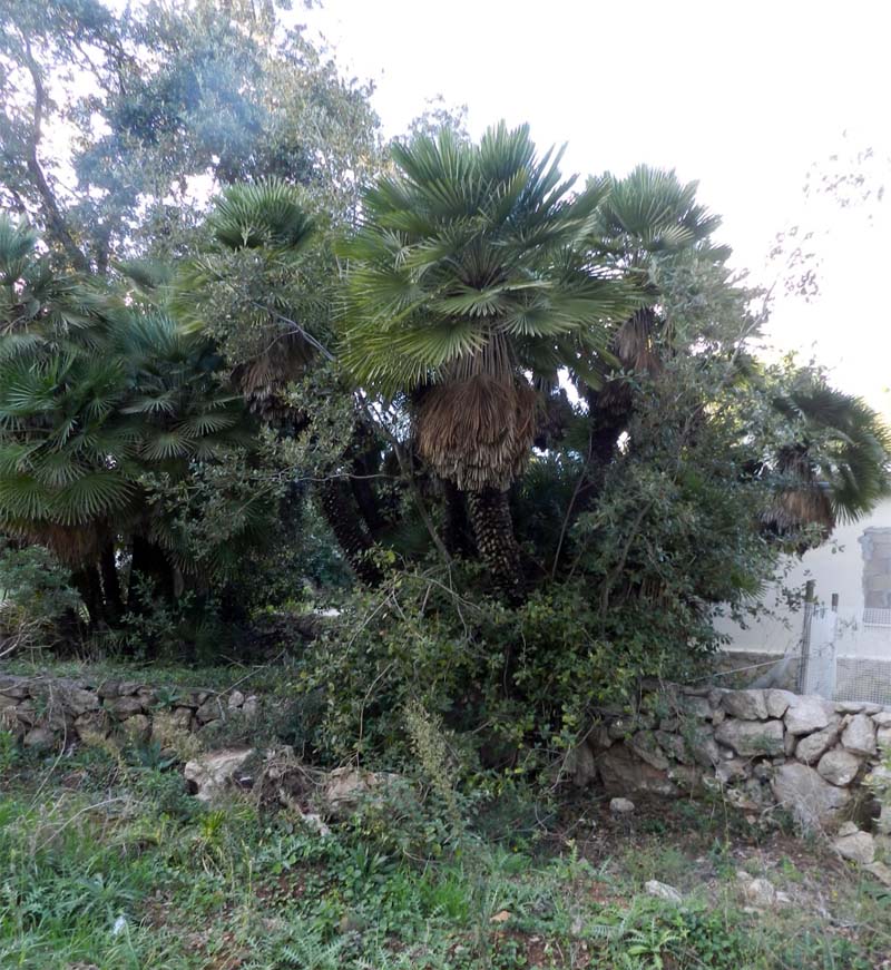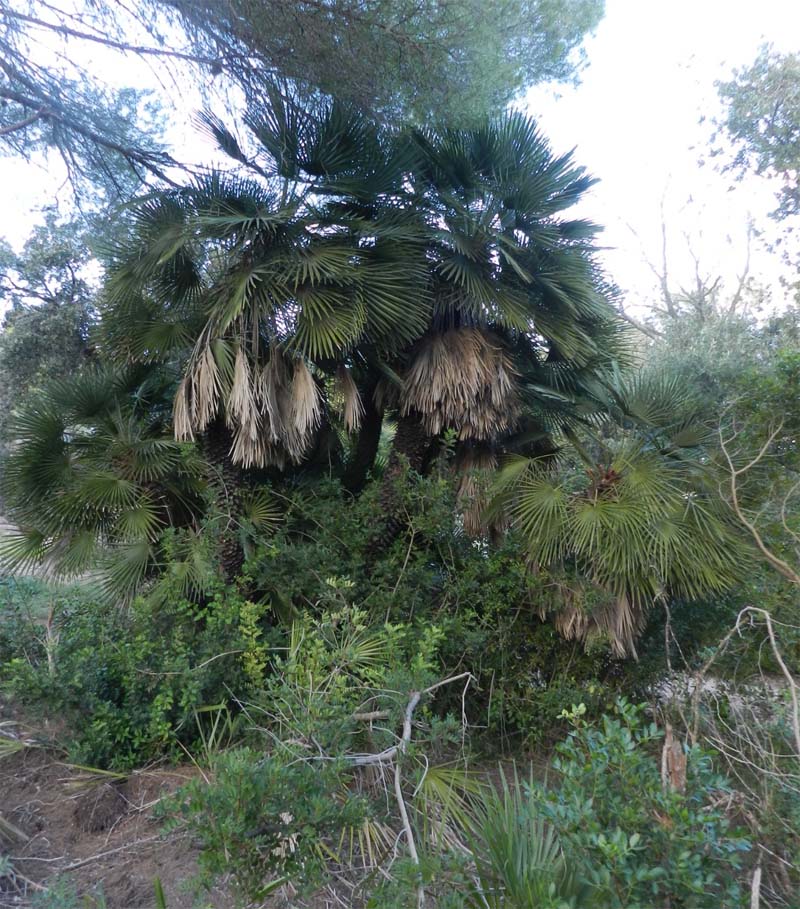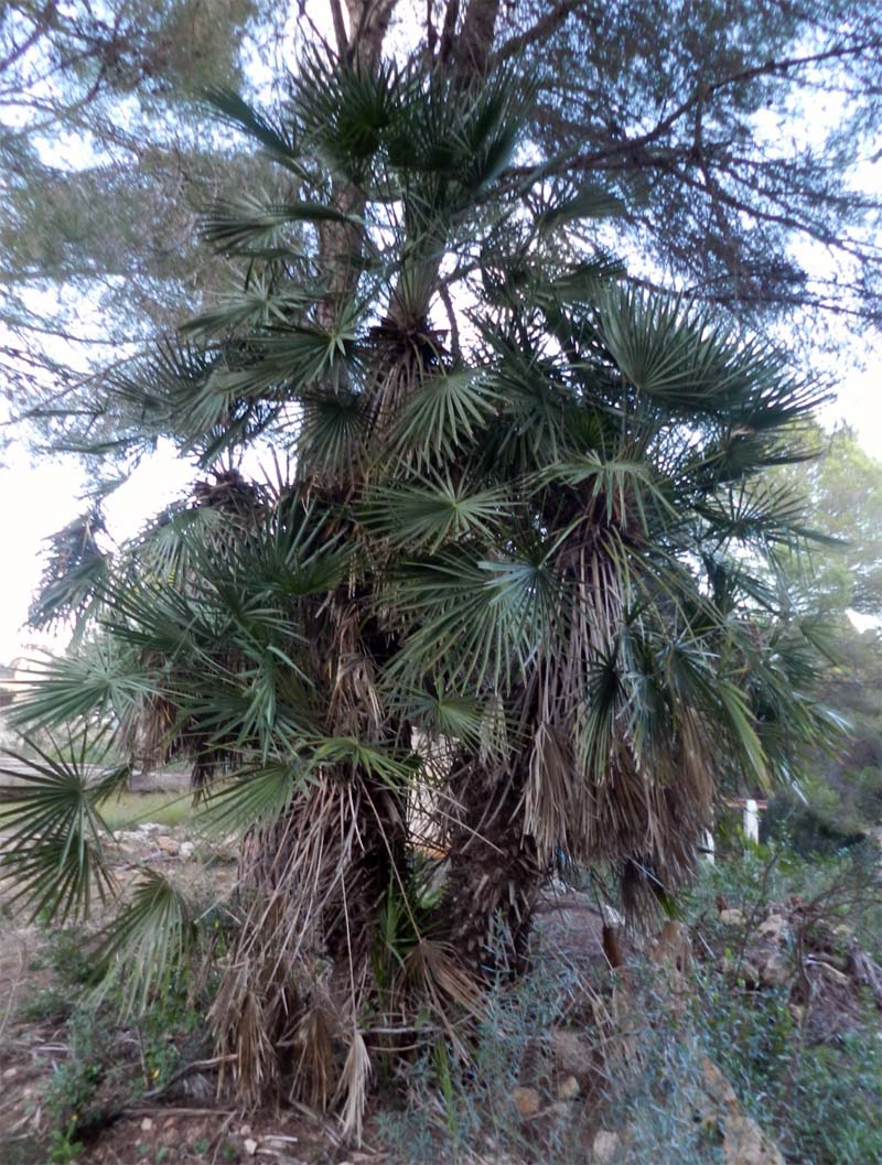 El garballó – chamaerops humilis- és una planta família de les palmeres i és una de les dues especies d’aquesta família nadiua de la Europa meridional, se considera l’única palmera autòctona de la nostra flora. Dintre la regió mediterrània el trobam des de Portugal i el Marroc fins a Malta i la seva distribució dins Mallorca es pot considerar erràtica, la trobam en abundància als dos caps de la Serra de Tramuntana ( Zona de Andratx i península de Formentor) i a la Península de Artà, sempre a llocs oberts i secs prop de la costa, molt resistent als incendis i molt adient per a evitar l’erosió del sol i la desertització. Cal tenir en compte que a les Balears és una espècie protegida pel Catàleg Balear i juntament amb les oliveres-ullastres, garrovers, alzines i garrics es pot considerar una planta representativa de les nostres illes.