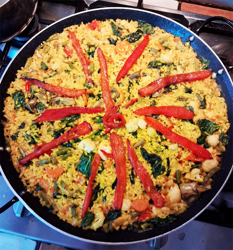 A les zones on l’arròs és també un element quotidià, com ara el País Valencià, Catalunya i les Balears, i gràcies a aquella popularitat que adquirí el bacallà salat, els dos ingredients ben aviat maridaren i, avui, a Internet no s’hi acaben les receptes d’aquesta aliança. Arròs amb brou, melós o sec. En la majoria dels casos, hi figura com a ingredient el bacallà esqueixat dessalat. Molt excepcionalment he trobat alguna recepta amb el bacallà salat, que és com el faig servir jo i com vaig veure que el feia sempre la meva mare. Jo m’hi referesc com a bacallà esfurmicat, que pas per la torradora i per l’aixeta per a llevar-li el gruix de sal de damunt, però de cap de les maneres deixat en remull durant hores. Tot seguit, dins la pella hi sofregesc, com deveu haver vist que faig en altres arrossos secs, tires de pebrot vermell, fins que són gairebé cuites. A aquestes tires els llevaré la pell i, a banda de donar bon gust, serviran per a completar la presentació. I després all, ceba i tomàtiga per al sofregit, i la verdura que vos agradi o que tengueu per casa. L’arròs, ben remenat amb els altres ingredients, inclosos els trossos de bacallà esfurmicat, fins que agafa color. Jo, en el darrer que vaig fer, hi vaig posar pastanagó, coliflor, carxofes, mongetes tendres i espinacs. Ja deveu saber l’ordre d’incorporació de cada element, segons el temps de cocció necessari de cadascun, tira-tira, que es vagi amorosint tot plegat. Brou de peix, també, d’una d’aquelles carmanyoles que sempre tenc per dins el congelador, i si no n’hi ha prou, un glop d’aigua. A manca de cinc o sis minuts per ser cuit, una bona picada d’all i julivert, i forn, que agafi una mica de crosta. Atès que es tracta de bacallà salat, convé anar amb compte precisament amb la sal. Sempre som a temps d’afegir-n’hi. Amb la sal del peix i del brou sol haver-n’hi prou.