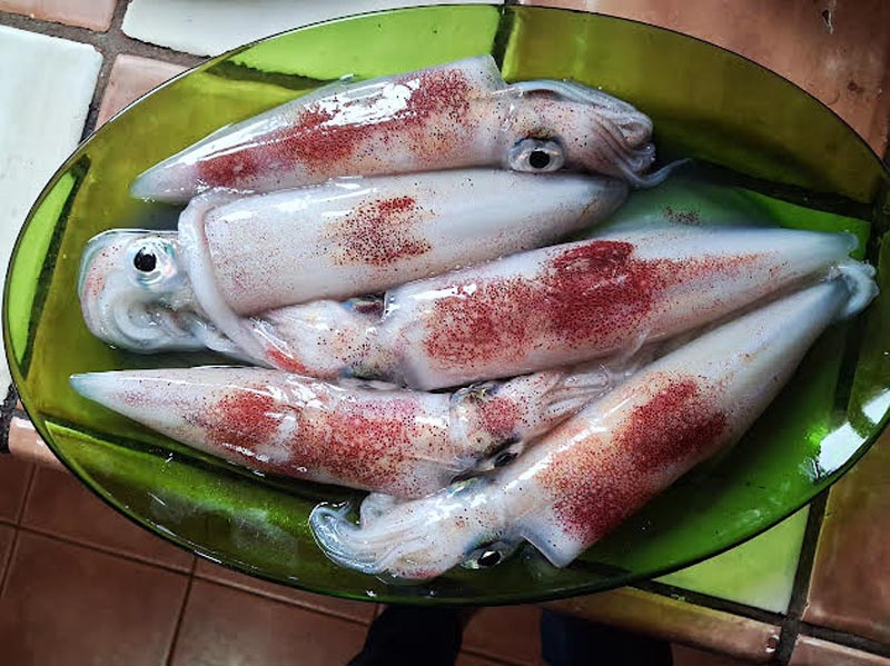 Anava enllestint aquesta pàgina quan he rebut dues agradables sorpreses, de dues persones estimades, relacionades amb la menjua. Primer, el meu net Eduard, ens ha duit una tortada de llimona, feta seva, que ha resultat deliciosa. Hi té tirada, aquest al·lot, a això de fer dolços. Que duri! D’altra banda, el meu estimat germà Pep ens ha regalat aquesta palangana de calamars de potera, agafats seus, que, no digueu, fan menjera. Com els faig, Pep?, que li deman. Mira –em contesta-, dos alls i a dins sa pella, no necessiten res més. Però, si vols que et retin, bull pasta a part, tallarines per exemple, i quan es calamars siguin cuits, amb no res basta, talla’ls a la bruta, tinta i tot, i mescla-hi sa pasta. Dues remenades i a taula! El consell no cau en terra. I una advertència, els calamars a la bruta només es poden fer amb calamars de potera, mai amb calamars de bou. Aquests arriben amb arena i a vegades amb algun peix a l’interior, cosa que fa impossible menjar-ne sense fer-los nets.