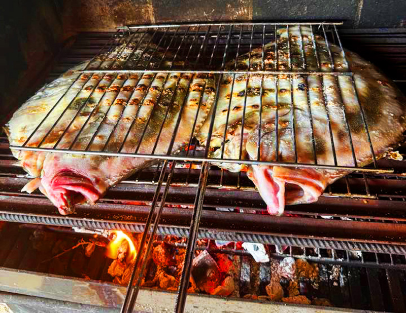 I per acabar la crònica d’aquesta quinzena, permeteu-me que us faci cinc cèntim d’una nova “grolleria” del grup dels cafès matinals. Ja n’he donat noves en ocasions anteriors, d’aquests dinarets que algun de nosaltres té el coratge de preparar. El fet és que la setmana passada ens reunírem per dinar de turbot, o rèmol, rodaballo en castellà, a la brasa. Aquest peix es distribueix pel Mediterrani i l’Atlàntic nord-oriental, però per ca nostra se’n veuen pocs i els que menjam venen de fora. Els nostres foren dos exemplars que, en conjunt, pesaren 6,5 k i que no tots estam en condicions de torrar sense cremar-los per defora i que siguin cuits per dedins. Però en el grup tenim un torrador magnífic, en Mauricio Raij, qui ja ens havia demostrat, en altres ocasions, les seves habilitats davant el caliu, torrant carn o peix. Ara poguérem gaudidir del seu art novament i podeu tenir per segur que el turbot, passat per les seves mans, va esdevenir una festa per al paladar. Unes tomàtigues de cirerol (Cherry), uns pebres de Padron, unes carxofes i unes patates bullides amb la pell van ser un acompanyament suculent, amanit tot amb una salsa de mantega i herbes que hi anà com anell al dit. Com solem dir per aquí, en Mauricio Raij, en això de torrar, hi té la mà trencada. Ell és d’origen uruguaià i jo crec que, els d’aquelles terres, duen l’art de la barbacoa a l’ADN. Només esper que ens pugui continuar delectant amb les seves habilitats.