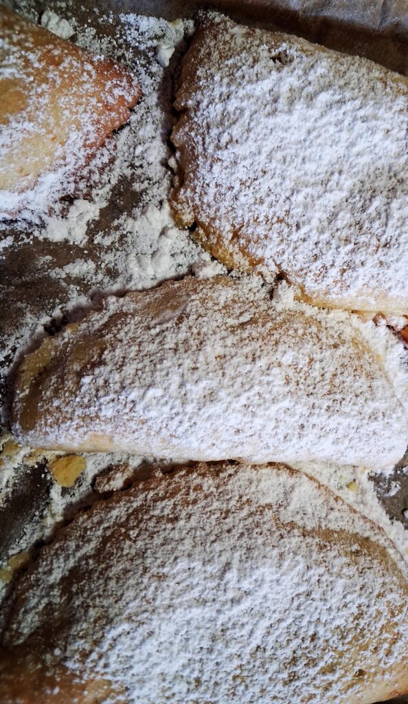Tornant a les panades, una ullada per les xarxes socials ens apropa a una realitat gairebé universal: arreu es fa pasta farcida del que sigui, dolça o salada. En la nostra llengua, la referència més antiga la trobam en el Llibre de Sent Soví (1324), i es tractaria d’un derivat de panades jueves, a les quals s’hi hauria afegit saïm de porc com a mostra de cristianització de la recepta. Els jueus conversos volien demostrar, així, que efectivament acceptaven aquest fet, mirant de defugir les represàlies de la Inquisició. Això duria, també, a variar-ne el farcit, el qual aniria incorporant, a més de la carn de porc, la de pollastre o de conill, i avui se’n fan també de mussola, de sípia o de bacallà, entre d’altres. A Menorca en diuen formatjades i, com he esmentat, de pasta farcida se’n fa arreu, al forn o fregida, a l’Argentina, a Castella o a Galícia (la empanada gallega), a Portugal, al Brasil… Els populars calzone italians semblen també una variant d’aquestes elaboracions, com ho són la nostra coca tapada o les espinagades. Pasta que, bàsicament, serveix perquè el seu contingut pugui durar uns quants dies. Que si vermell d’ou, que si suc de taronja, panades amb el toc personal, amb el gust de cada casa, a partir d’uns elements bàsics: farina, saïm i aigua. Aquests tres ingredients són els que nosaltres hi posam, sense res més. Ens agrada una pasta més “comuna”, però, ja dic, cadascú és cadascú, gratau una mica per les xarxes socials i en veureu mil i un consells. Diria, per fi, que l’origen de la panada resulta disputat i, com que és bona de fer, és agosarat atribuir-li una sola procedència i que, per tant, devia aparèixer simultàniament a molts d’indrets, i en el nostre cas sí que serien de procedència jueva.