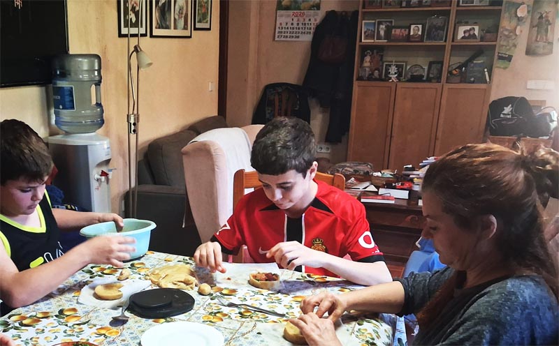 El Dilluns de Pasqua, amb els nets incorporats a la tasca, tornàrem a pastar, però aquesta vegada va ser la meva filla l’encarregada del treball, i li va sortir una pasta tirant a perfecta. Ella, na Toti, hi té traça amb tot el que és pasta, i les seves coques dolces, especialment la de quarto, li surten molt encertades. N’Eduard, el net major, també ja se’n desfà prou bé a l’hora de fer tortades. Jo em vaig quedar amb una certa sensació de fracàs, però amb el conhort de veure que a ca nostra el relleu sembla garantit. Esper que no se’n cansin. Vàrem fer panades de carn de porc (a ca nostra tenim una persona estimada que és al·lèrgica al me), panades de carn amb xítxeros, de xítxeros tot sols (amb una mica de panxeta i de sobrassada), panades de pollastre (que els més joves exigeixen)… I rubiols de confitura i de cabell d’àngel, ben bons.