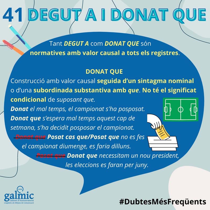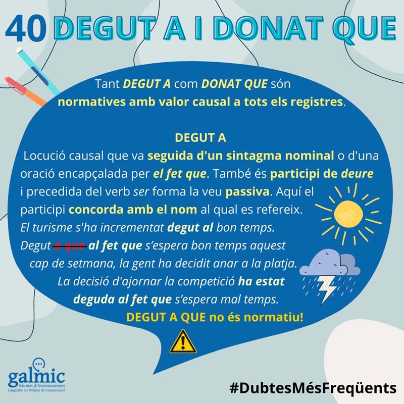 De totes les modificacions que han fet al darrerament, la que va provocar més rebombori va ser la reforma ortogràfica del 2016, on van notificar la reducció de paraules amb accent diacrític. Tants anys remugant per haver de memoritzar els accents diacrítics i, un cop fan la llista més accessible, tot són queixes! Aquest anunci va eclipsar altres modificacions, com la que avui ens ocupa: l’admissió de les expressions degut a i donat que amb valor causal en tots els registres.