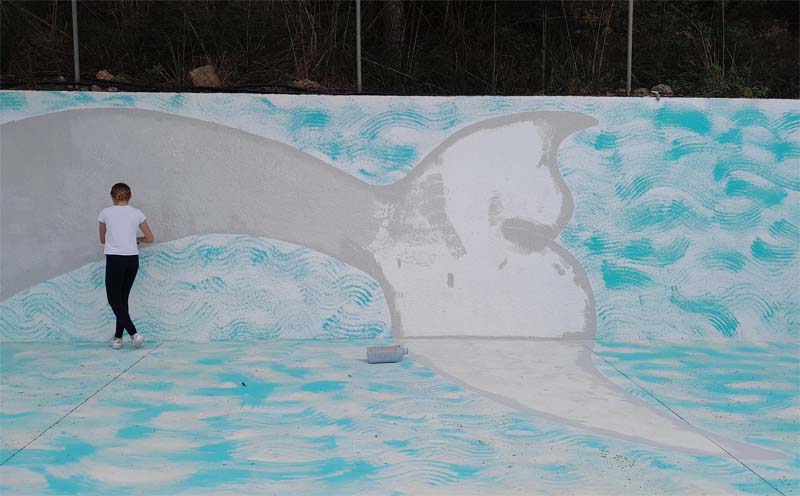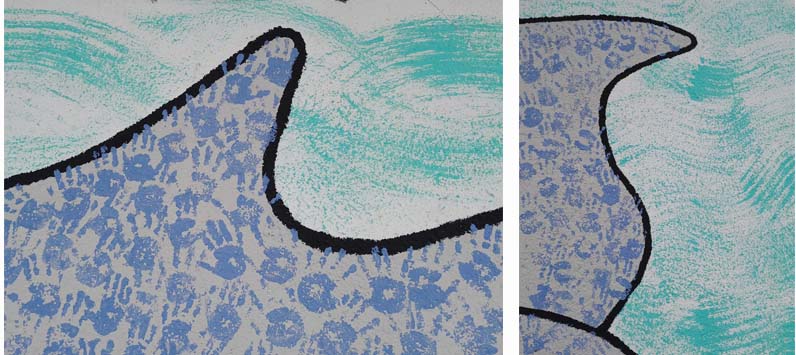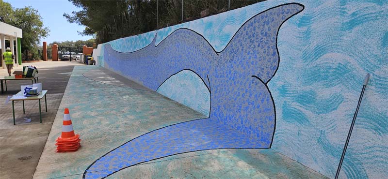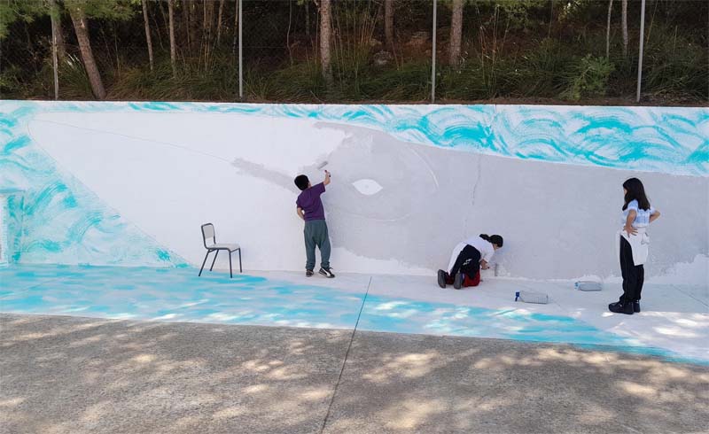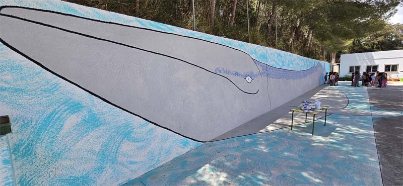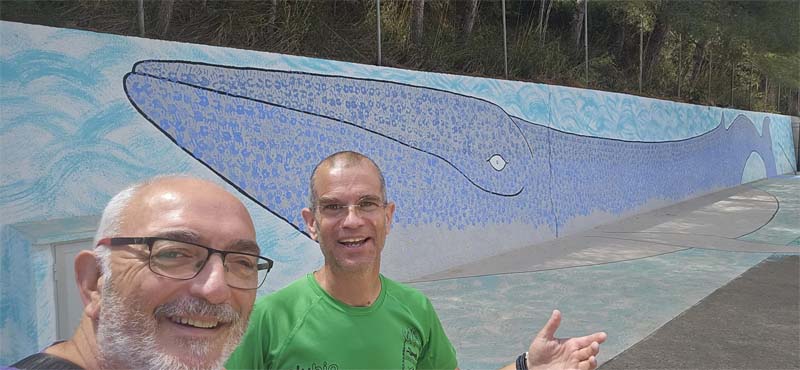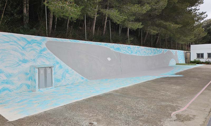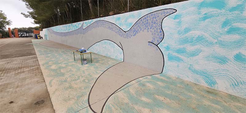 És un mural de tamany real d’una BALENA BLAVA, 25m de longitud i la gran pregunta a més de moltes altres va ser: Quantes mans farien falta per cubrir l’animal més gran del món? El tema dels pams i les passes estava clar, però la pregunta en qüestió encara no la podem contestar.