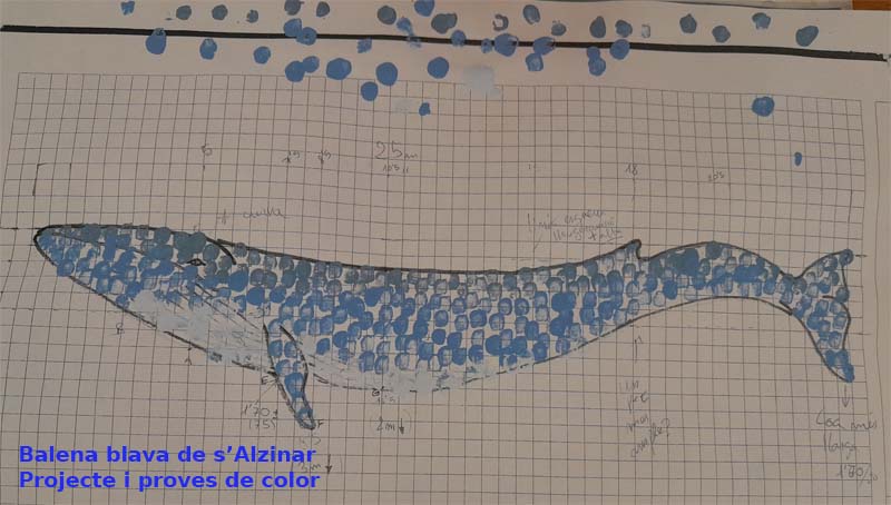 És un mural de tamany real d’una BALENA BLAVA, 25m de longitud i la gran pregunta a més de moltes altres va ser: Quantes mans farien falta per cubrir l’animal més gran del món? El tema dels pams i les passes estava clar, però la pregunta en qüestió encara no la podem contestar.