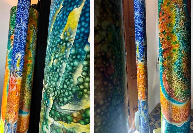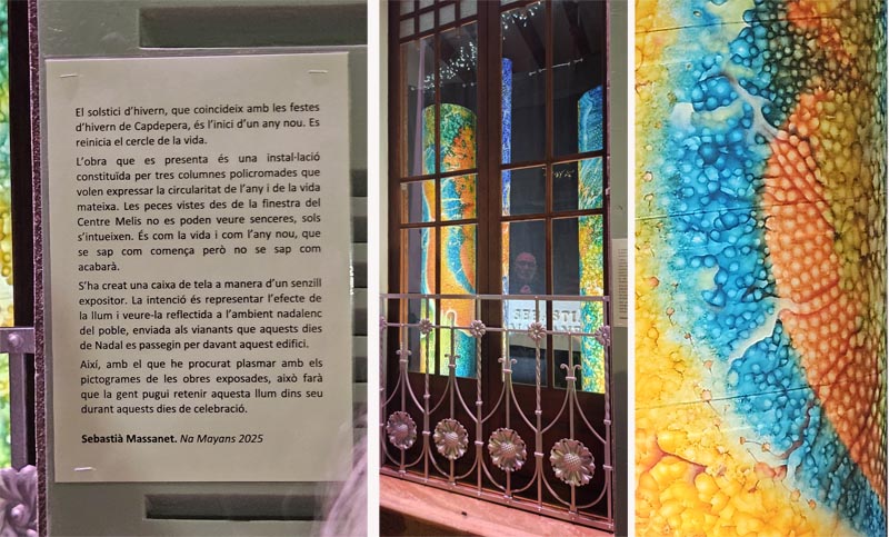L’artista, en Sebastià Massanet va comentar que l’instal·lació la formen 3 columnes rodones que mostren la part anterior però amaguen el darrere “… vol representar l’any que sabem com comença però no com acabarà”.