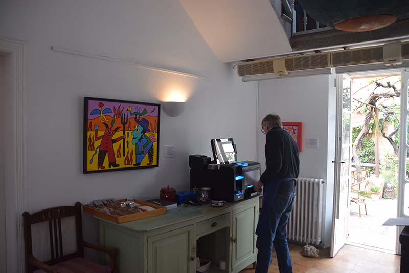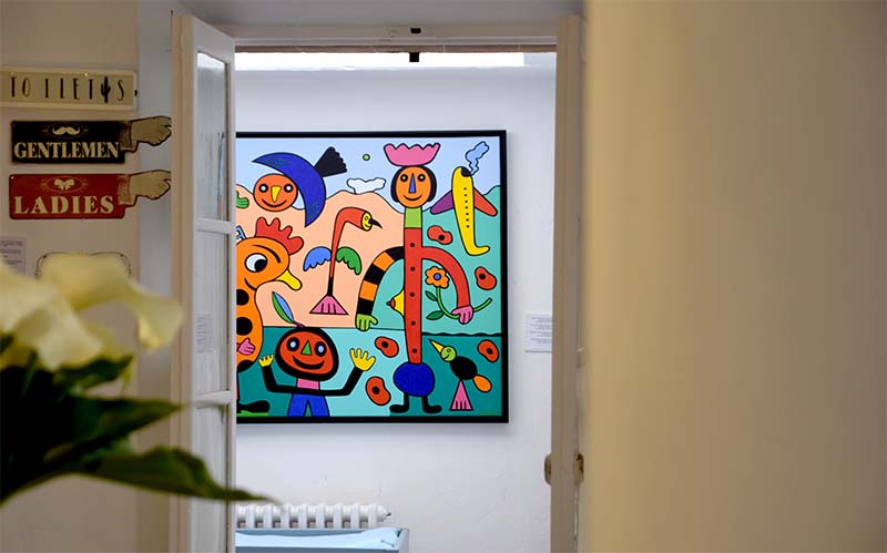 És una ocasió poc habitual, tot i que ja ho ha fet a altres indrets com Can Patilla,;Gustavo trasllada el seu univers creatiu fora de l’estudi per instal·lar-lo en un espai quotidià, demostrant que l’art pot irrompre en qualsevol escenari quan la motivació és autèntica. En aquest cas, l’amistat és el fil conductor.