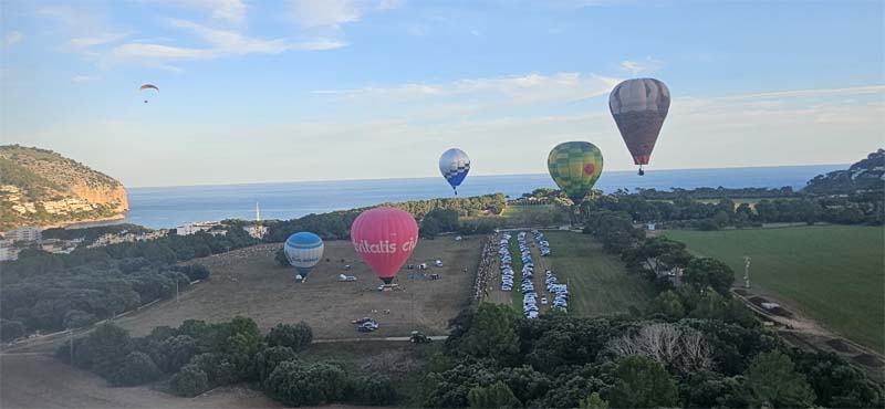 Aquests dies hem pogut gaudir de l’espectacle dels nombrosos globus aerostàtics que participen en el festival organitzat a Capdepera (IBBF 2025 – Illes Balears Ballooning Festival.). És la segona edició, i quan encara no s’ha acabat, podem qualificar d’èxit la convocatòria i la participació del públic que compareix a les sortides o als vols captius nocturns. Cap Vermell ha estat convidat a volar en una de les sortides (com molts de mitjans de comunicació locals i d’àmbit estatal) i us oferim un avançament de la crònica amb unes imatges preses des del globus. El nostre agraïment a l’organització i les dues pilots que ens oferiren viure l’experiència.
