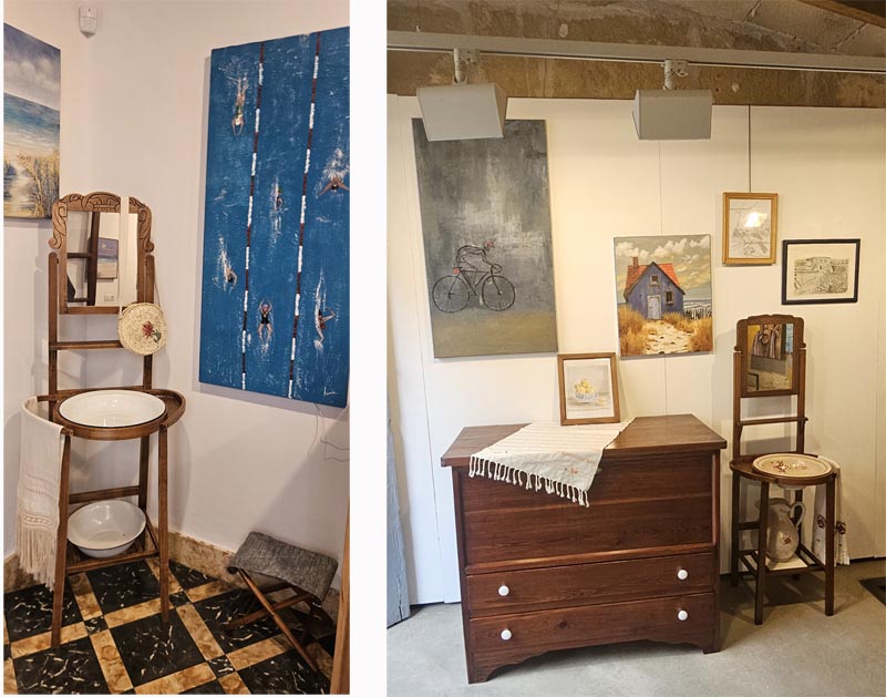 Després de les presentacions, el públic va voltar per l’exposició, exquisidament preparada pels professors/es i alguns alumnes voluntaris, emprant les obres de pintura, llata i els mobles restaurats durant el curs 2025/2026.