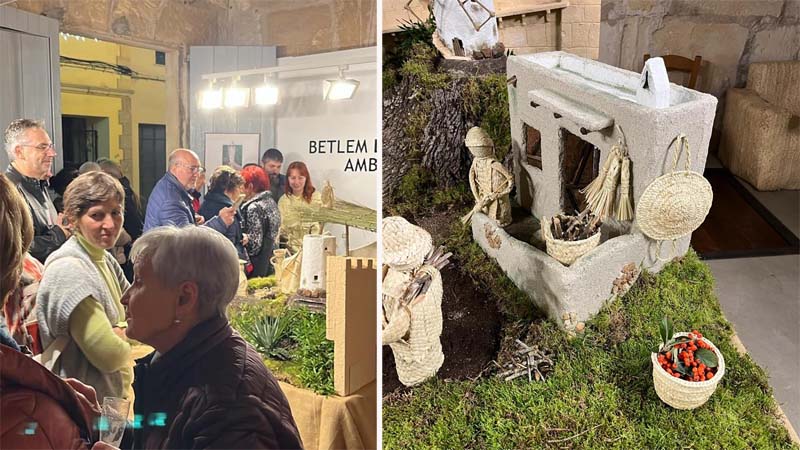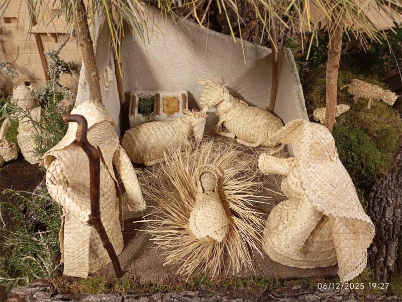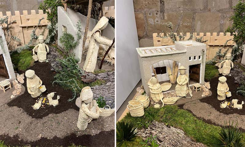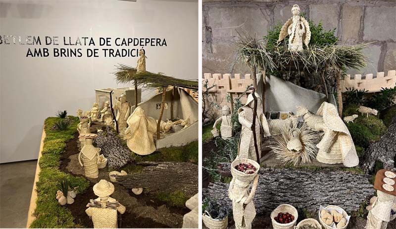 Seguidament, el betlem tenia tot tipus de detalls com unes ensaïmadetes de llata que una pagesa portava sobre el cap amb una post de fusta, com devia ser un temps, una casa tenia fins i tot la reproducció d’un ensofrador, senalletes de llata plenes de brins, o de fusta per fer foc, un molí fariner a dalt d’un turó i al centre l’estable del naixement, amb unes figures també fetes amb una artificiositat meticulosa que demostrava la paciència i la mestria d’aquestes artesanes que tornen a fer una demostració digna de mantenir la gabellinitat en el lloc on li correspon, també hi havia petits garballons que decoraven els camins del betlem, tot un atractiu pels amants del minimalisme extrem, la filigrana artesanal era rematada amb unes ovelletes fetes amb llata cosida, una feina laboriosa i molt elaborada.
