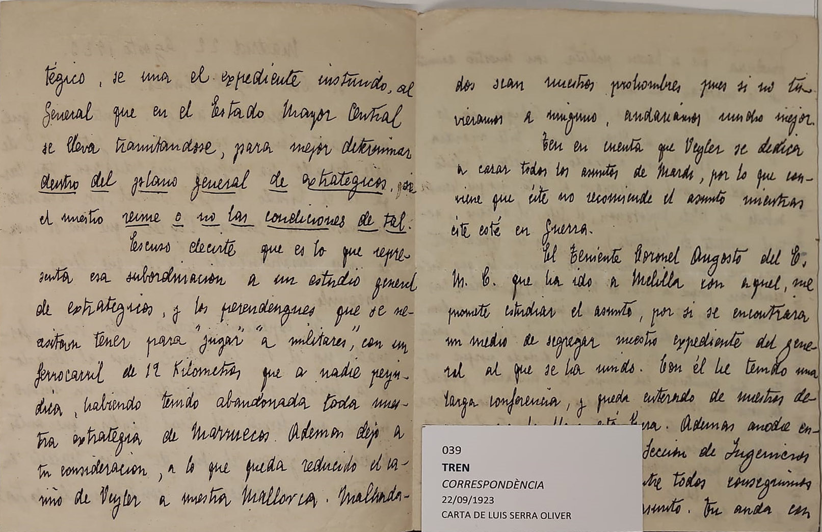 Ramón Molina apuntà que a principis de segle XX Balears era la quarta regió industrial de l’Estat, després de Catalunya, País Basc i Astúries.A principis del segle XX, Cala Rajada era una zona aïllada i mal comunicada, però amb una gran importància per als militars per la seva posició estratègica. Al projecte original del tren, des de Palma arribava fins a Cala Rajada. El 1912 els ajuntaments van demanar la prolongació, però Defensa no hi va accedir. Es requeria la conversió en una línia estratègica que servís a les necessitats de Defensa Nacional. Ramón Molina mostrà el plànol de l’itinerari de tren, explicà la distinció que feia la Llei de Ferrocarrils secundaris i estratègics de 1908 i afirmà que possiblement l’errada fou sol·licitar que el tren de Cala Rajada se sol·licitàs com a estratègic.