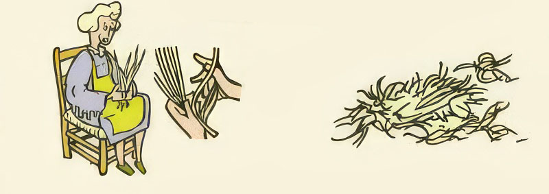 – Espusims fins: Deixalles llargues i primes com un cabell que es produeixen quan es retallen els costats dels brins per igualar-los. Majoritàriament, són utilitzats per fabricar graneretes d’emblanquinar, graneres i estorins.