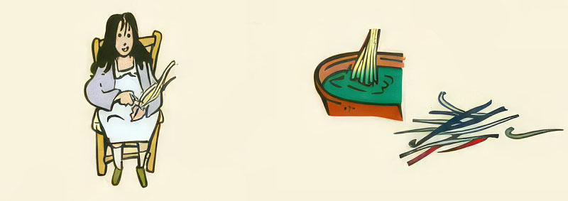 Fer brins: Igualar amb un ganivet l’amplària de cada una de les palmes embrinades, tot separant el nervi dels plecs.