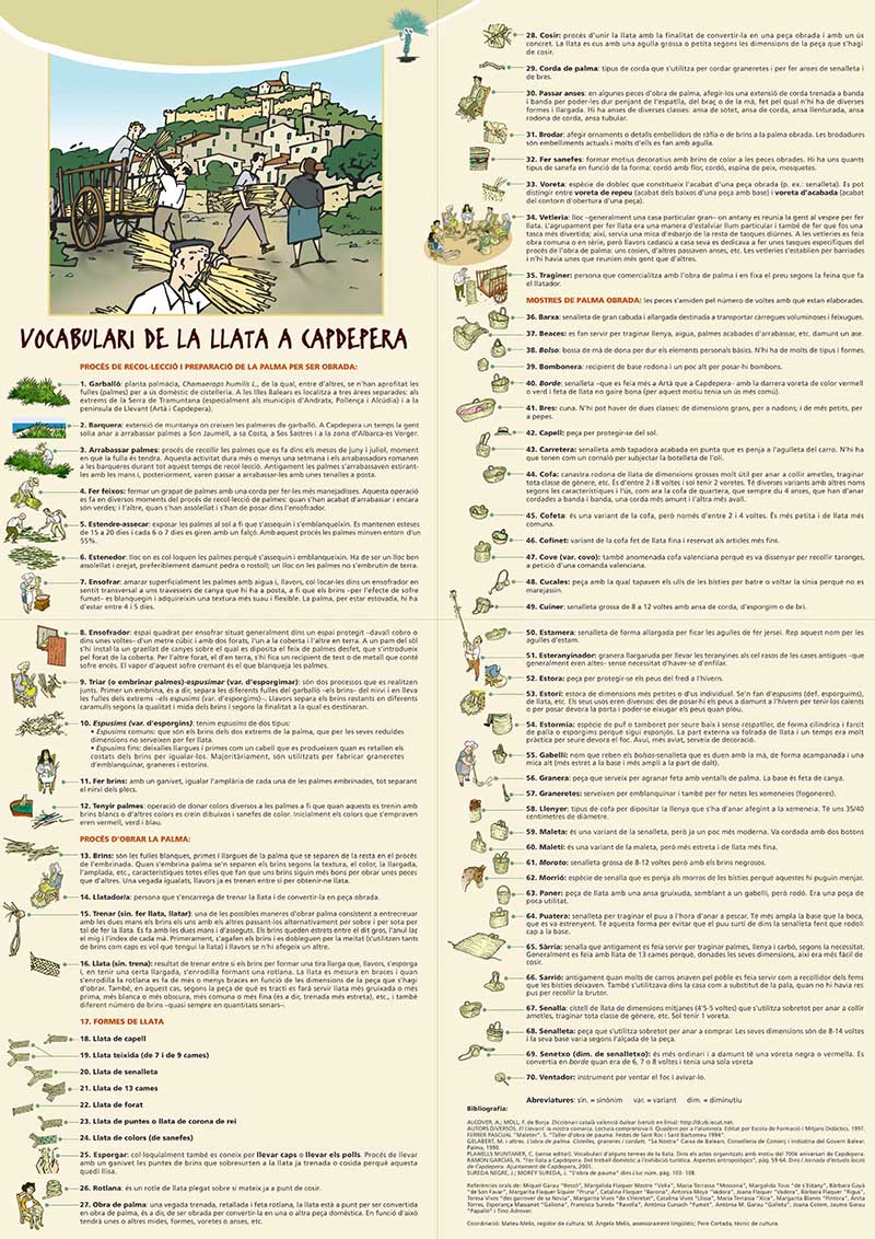Queden molts noms de les diverses peces clàssiques d’obra de pauma. A continuació en relacionam un seguit. No oblideu que les peces es miden pel nombre de voltes amb què estan elaborades. Al final de l’article teniu un cartell en pdf.