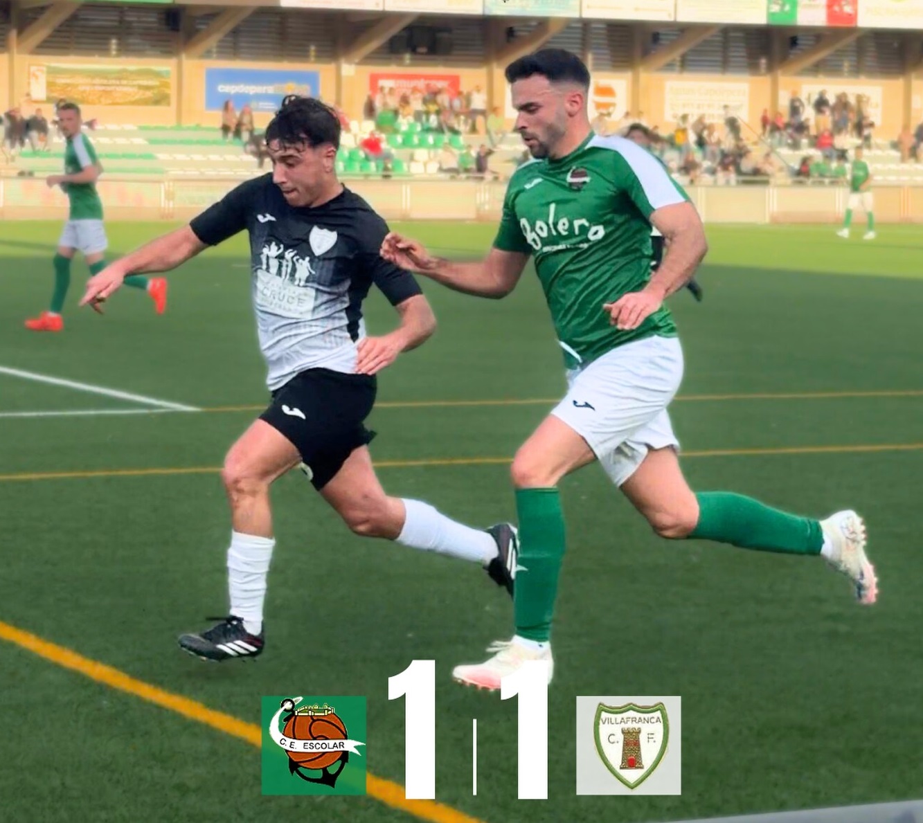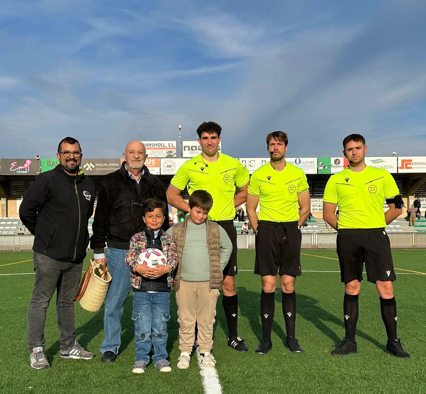 Abans que rodi la pilota, el futbol es posa dret. I ho fa per honorar els seus. Salvador Moll Vaquer, memòria viva de l’Escolar, trepitja la gespa amb la calma dels qui ho han donat tot. Toc subtil, treta d’honor. I una graderia que s’aixeca com un sol cos. Aplaudiments que no són de cortesia: són de deute. Dels que no es poden pagar mai del tot. Gràcies, Salvador. Etern.