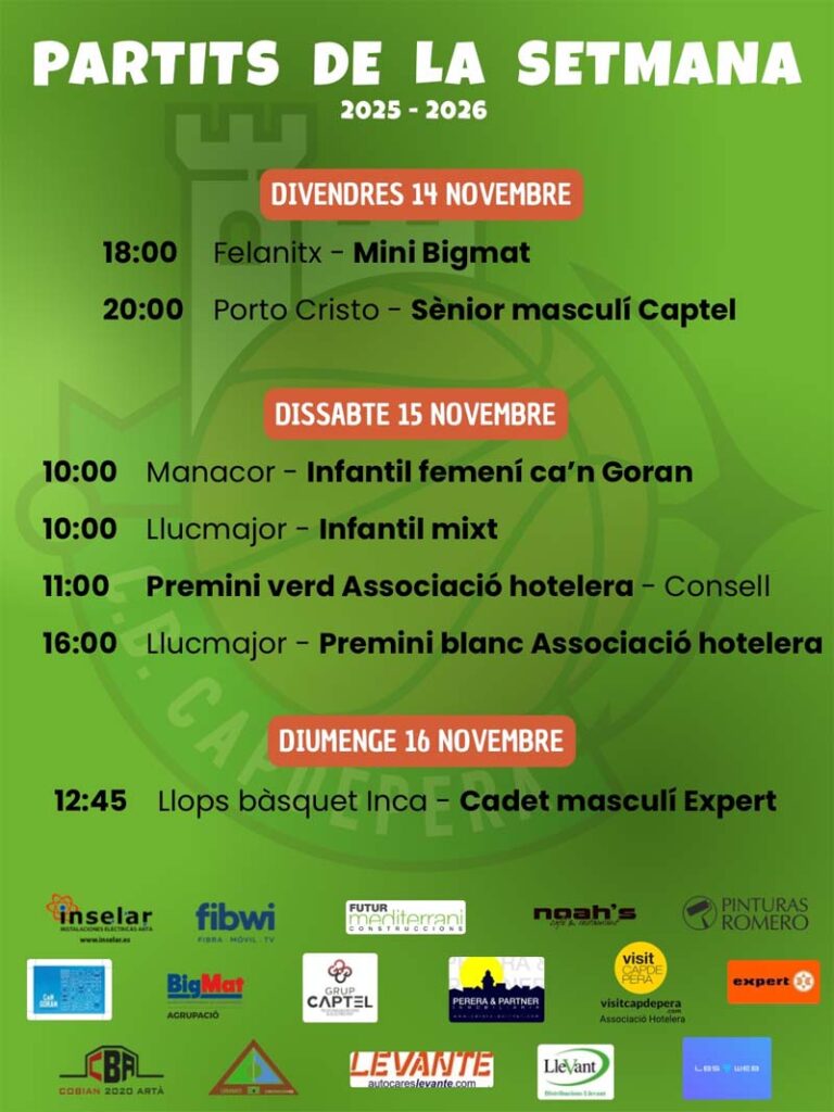 Properament vos donarem més informació sobre els horaris i com apuntar-vos al dinar. Gràcies per formar part de la nostra gran família! Continuam fent créixer el bàsquet a Capdepera!
