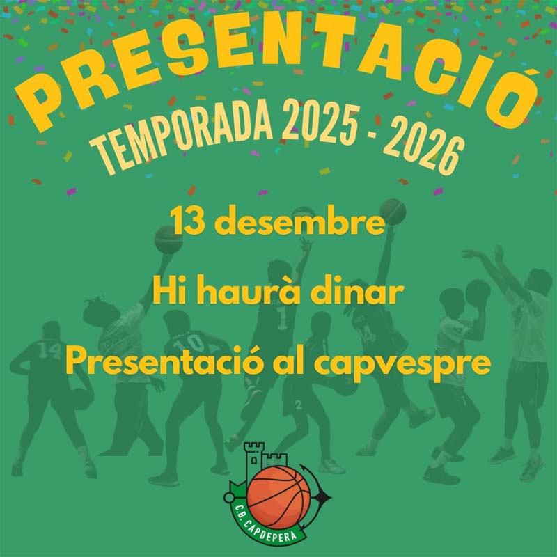 Estimades famílies, jugadors, jugadores i públic, vos informam que el proper dissabte 13 de desembre celebrarem la presentació oficial de la temporada 2025-2026 del nostre club .