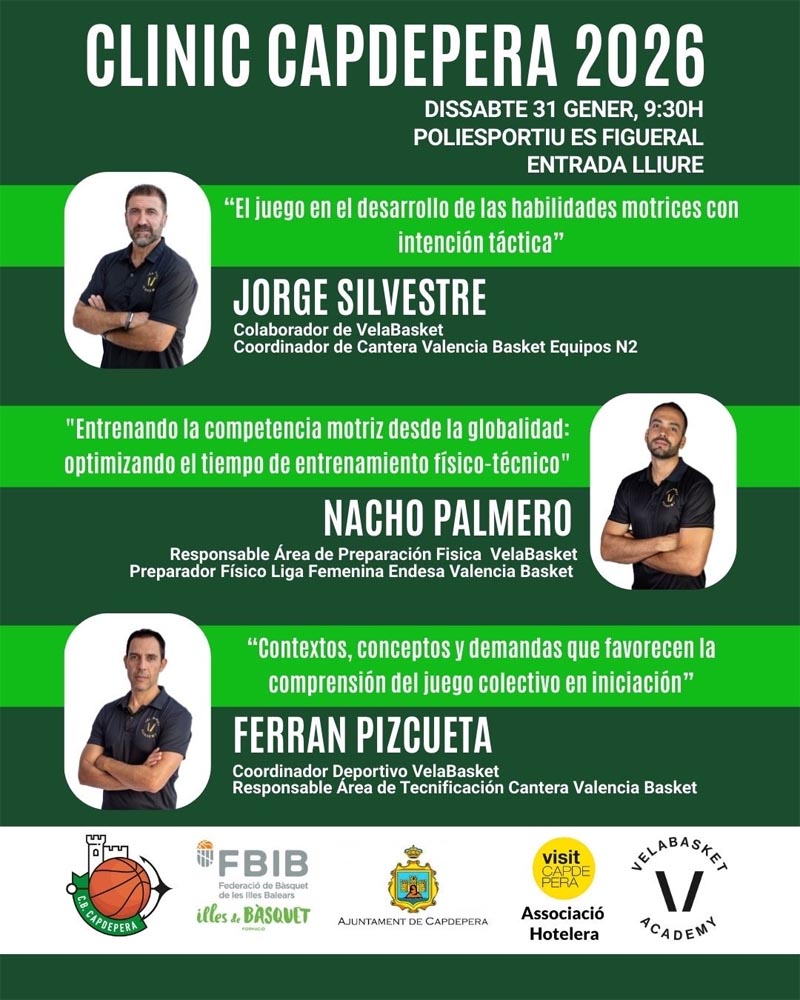 Dissabte 31 de gener a partir de les 9:30h, es durà a terme una jornada formativa impartida per JORGE SILVESTRE, NACHO PALMERO i FERRAN PIZCUETA, diferents peofessionals del València Bàsquet.