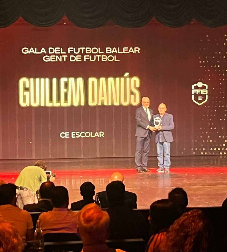 Divendres 14 de novembre tengué lloc la Gala de Futbol Balear 2025. En ella es guardonà amb l’escut de plata a Guillem Danús per la seva trajectòria de tota una vida dedicada a l’Escolar. Els presentadors ens definiren com “a club man”, “un home de club”, de un sol club a qui ha dedicat tota la seva vida. Enhorabona.