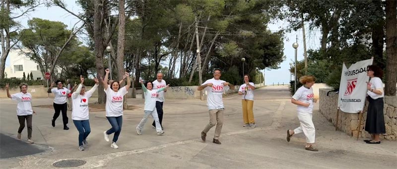 El grup de participants enfilaren el carrer que puja cap al far i giraren en direcció a Cala Lliteres.
