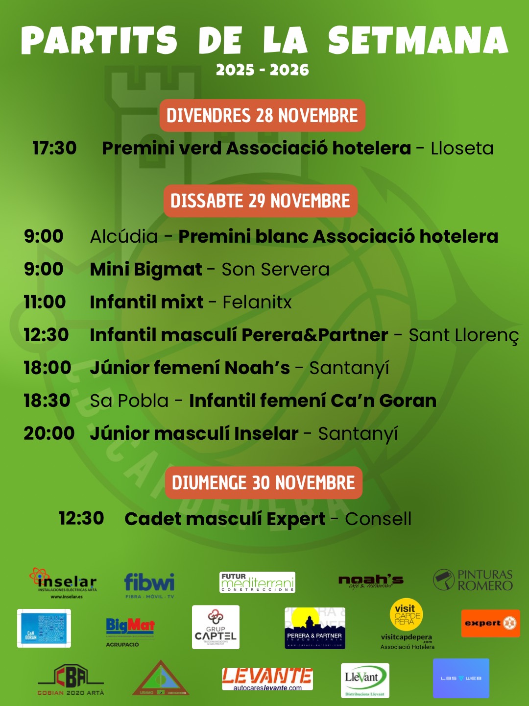 Bàsquet Data nov. 29 - 30 2025 Caducat! Hora Activitat de tot el dia Localització Poliesportiu Es Figueral Capdepera Categoria Esports Comparteix aquest esdeveniment