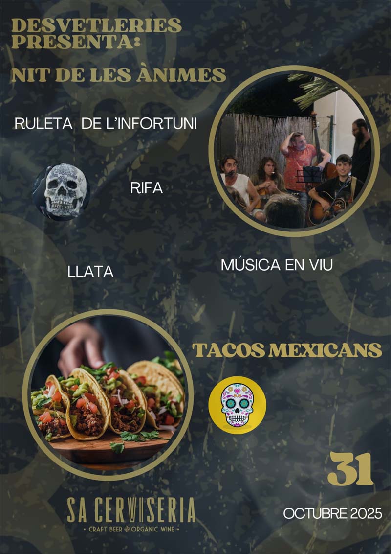 Desvetlleries a Sa Cervisseria Celebració de Nit de Ses Ànimes a Sa Cervisseria 00 dies 00 hores 00 minuts 00 segons Data oct. 31 2025 Hora 18:00 - 23:00 Comparteix aquest esdeveniment